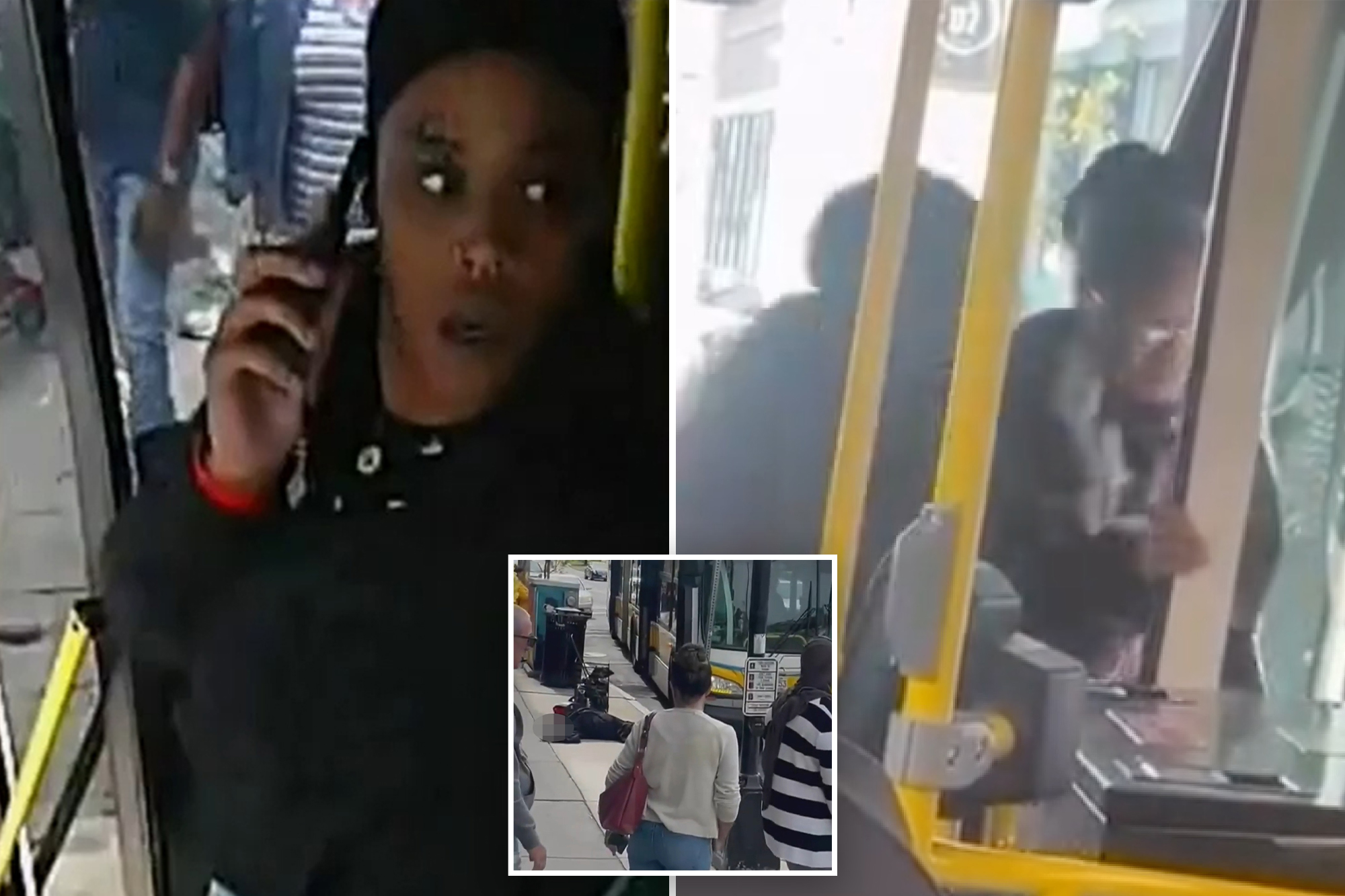 Alarming security footage from inside the bus showed the suspect first shoving the elderly woman toward the bus’s open doors as she held on for dear life.