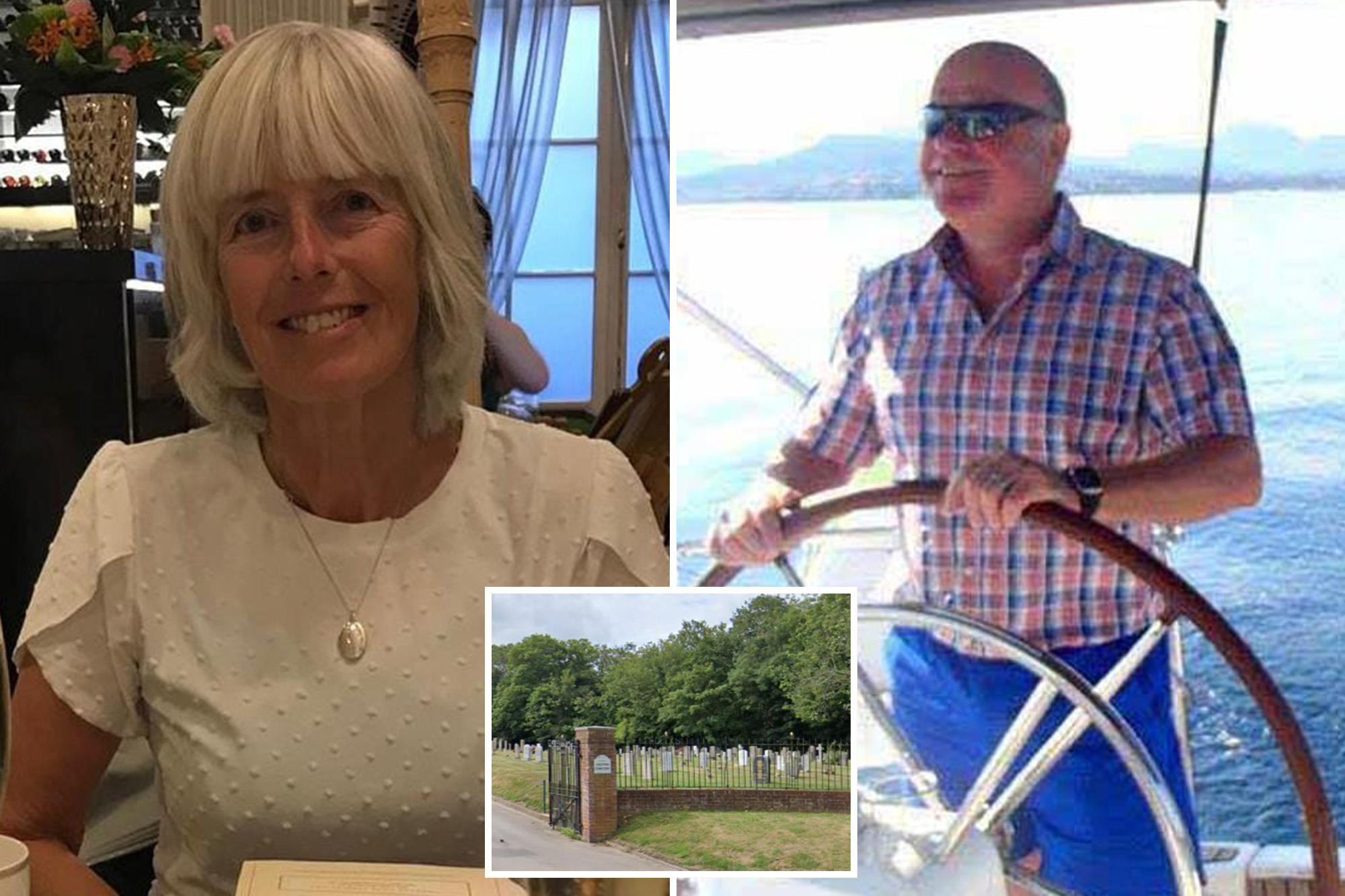 Paramedics pronounced her dead at the graveyard, according to reports. Police did not disclose how Suter, a yachting enthusiast, allegedly killed his wife.