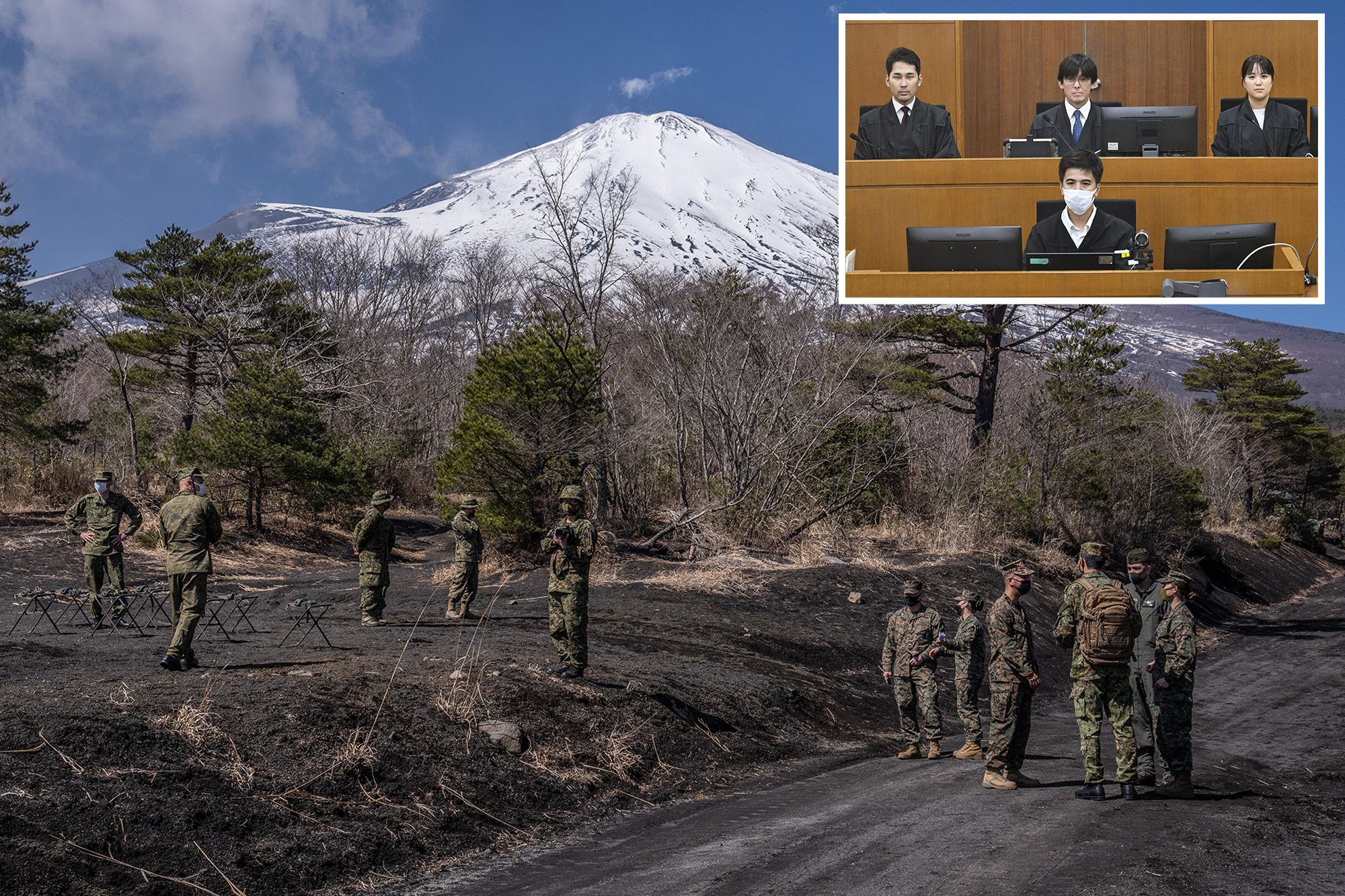 Members of the Japanese Ground Self-Defense Force gather near Mount Fuji. Getty Images