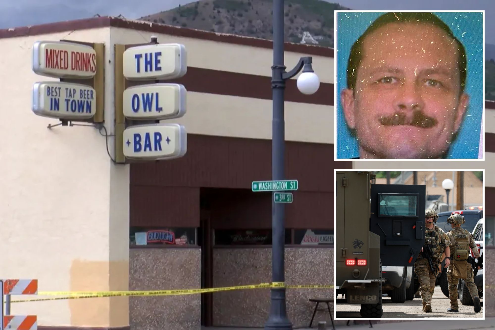 Bullets started flying at the Owl Bar in Anaconda at 10:30 a.m. and a neighbor of the watering hole, 45-year-old Michael Brown, is suspected of carrying out the attack, authorities said.