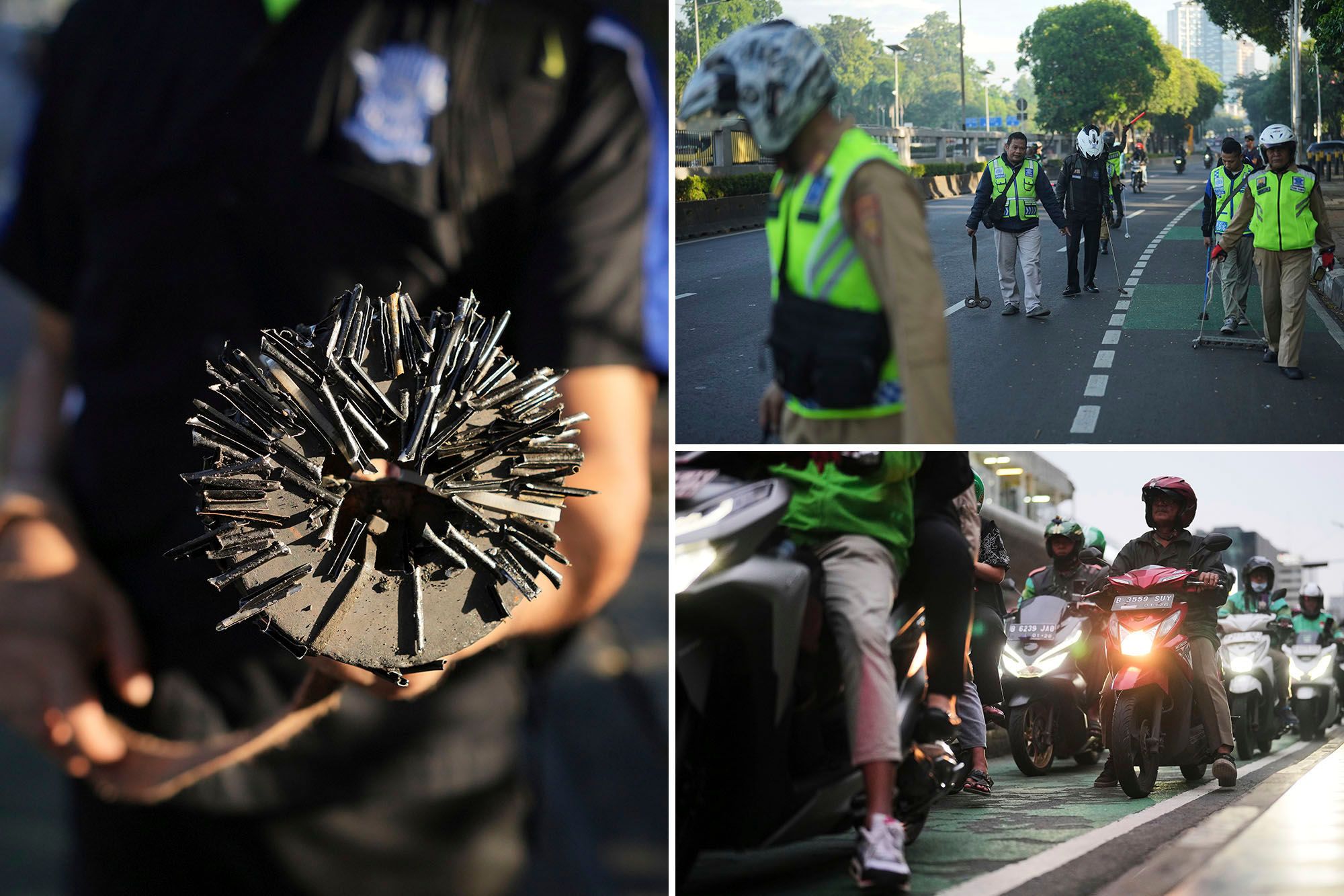 Jakarta Traffic Police Chief Komarudin told the AP he believes the metal is intended to force bikers to the side of a road with a flat — making them more vulnerable to serious crimes like robbery.