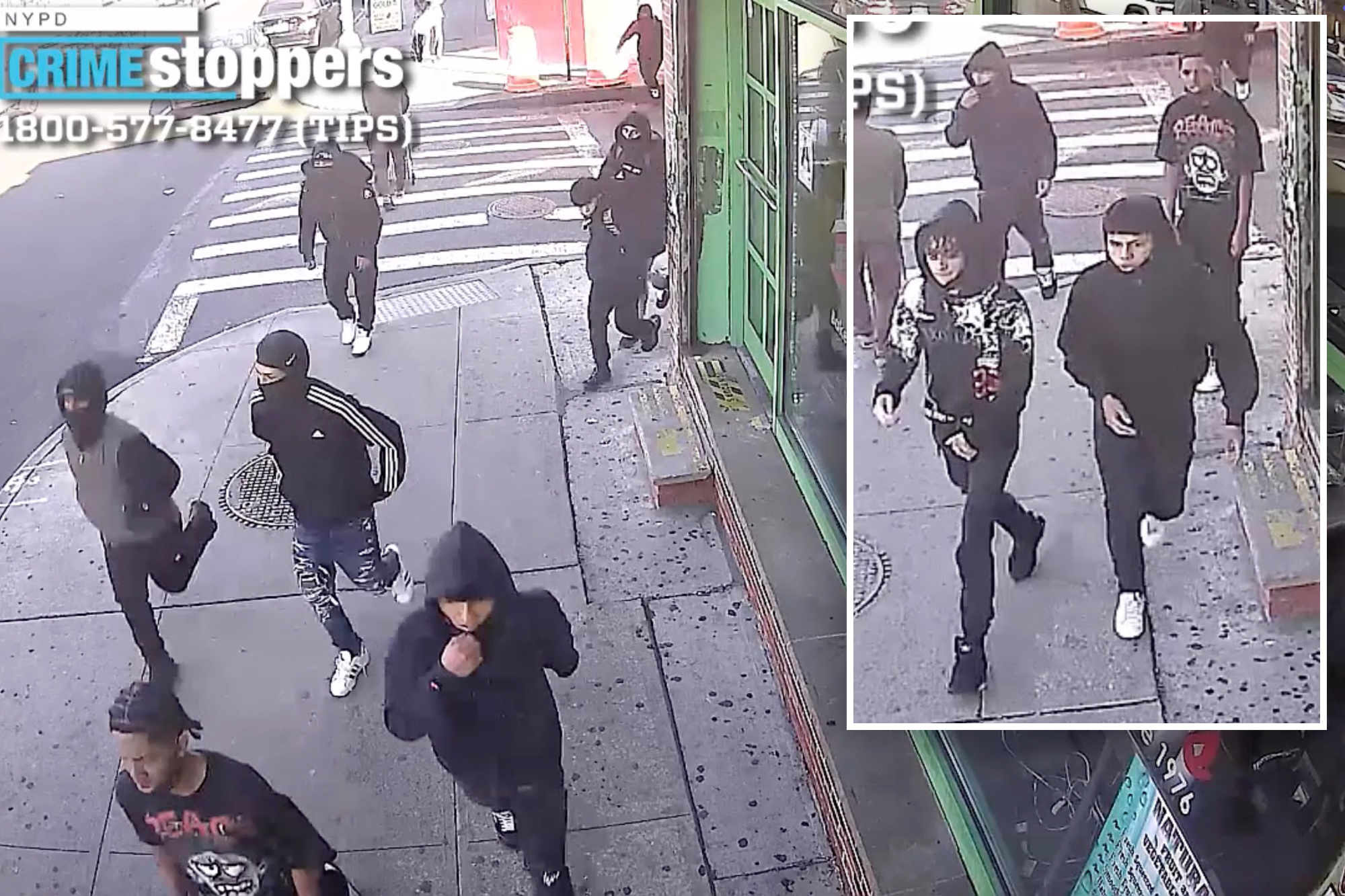 The savage group then ripped off the teen’s black and yellow sneakers, worth $340, before taking off, police said.