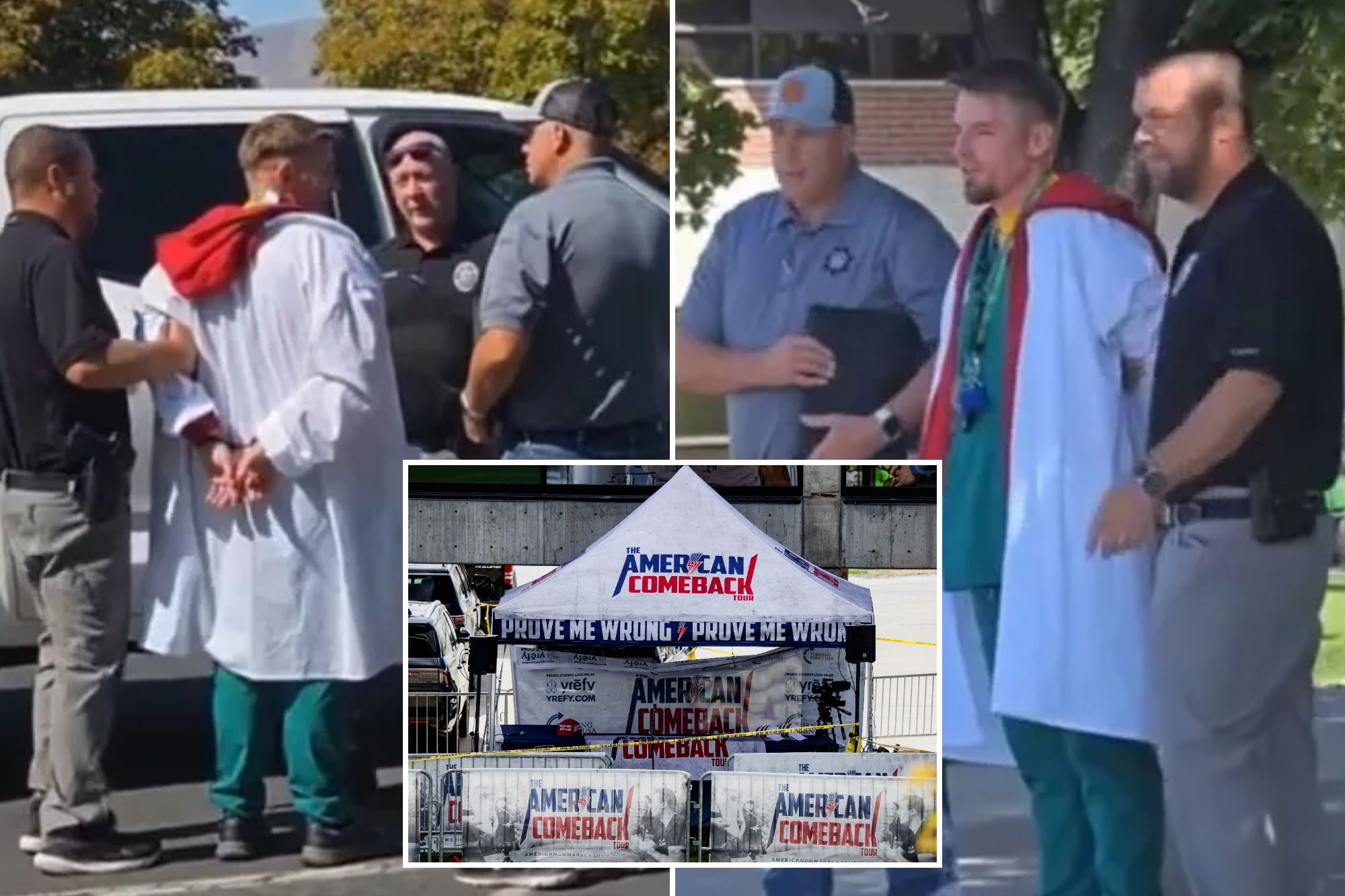 A man dressed in a white lab coat was arrested Thursday for allegedly sneaking into the area where Charlie Kirk was assassinated, telling police he was “reminiscing and filming the scene.”