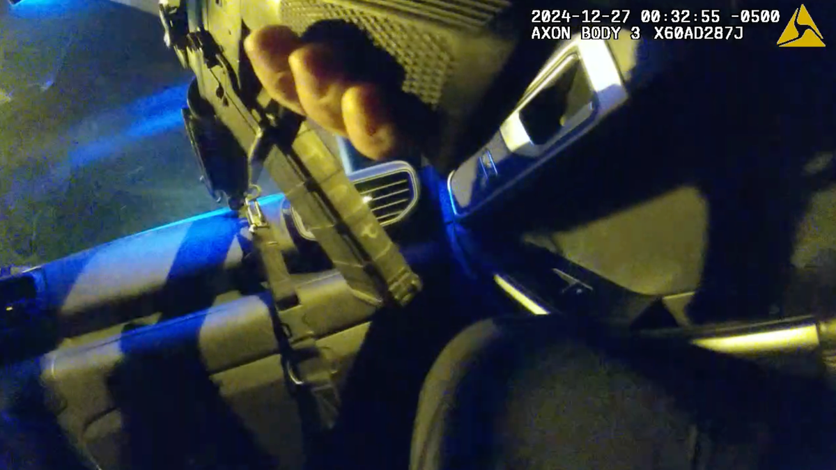 Cuyahoga County Sheriff’s Deputy Isen Vajusi pointed an assault rifle out a window while speeding more than 100 mph at times during a December 2024 chase of a stolen car, bodycam footage shows.