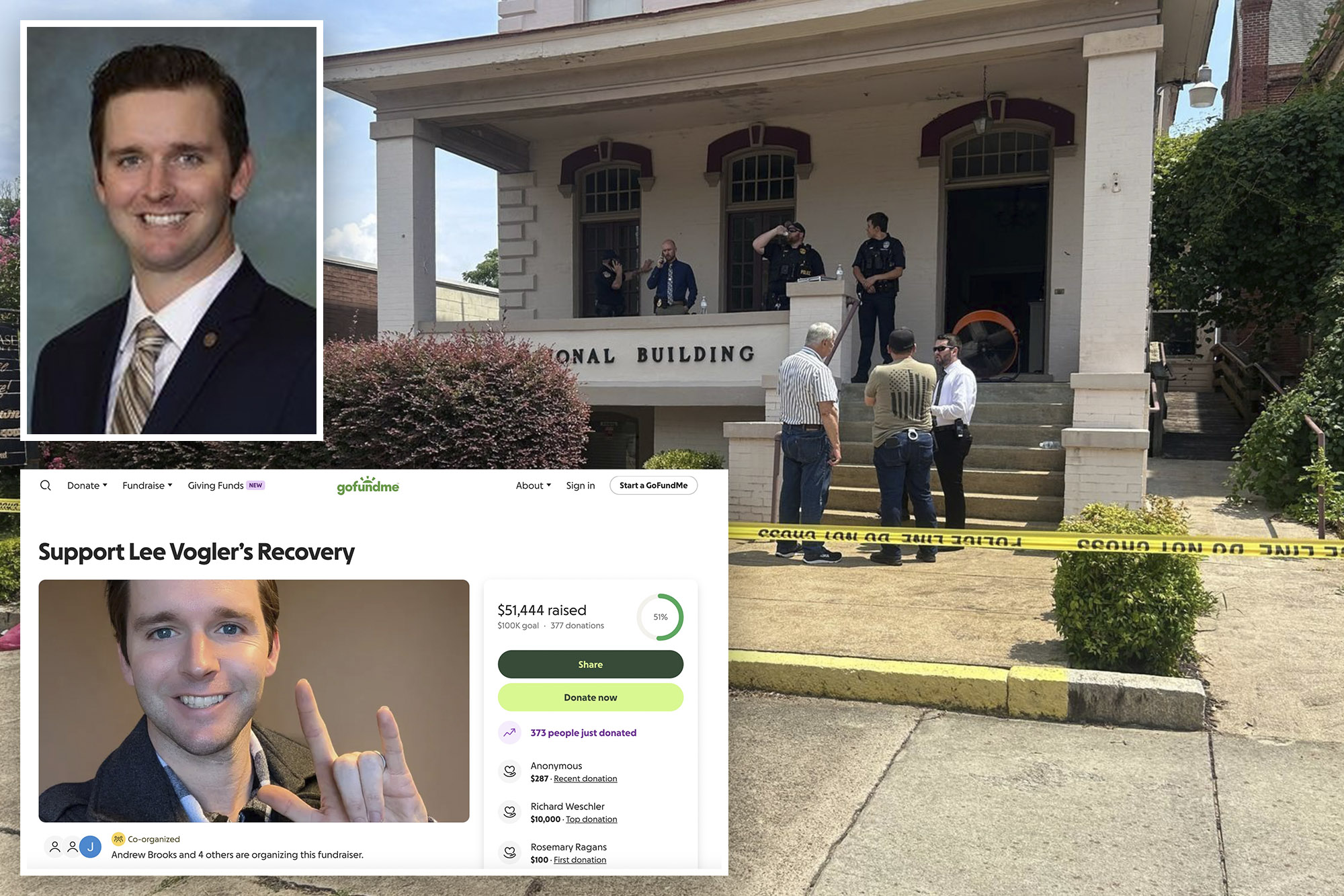 Danville City Councilman Lee Vogler, 38, is currently in stable but critical condition at UNC Burn Clinic in Chapel Hill, North Carolina, according to a GoFundMe launched by the Republican lawmaker’s boss.