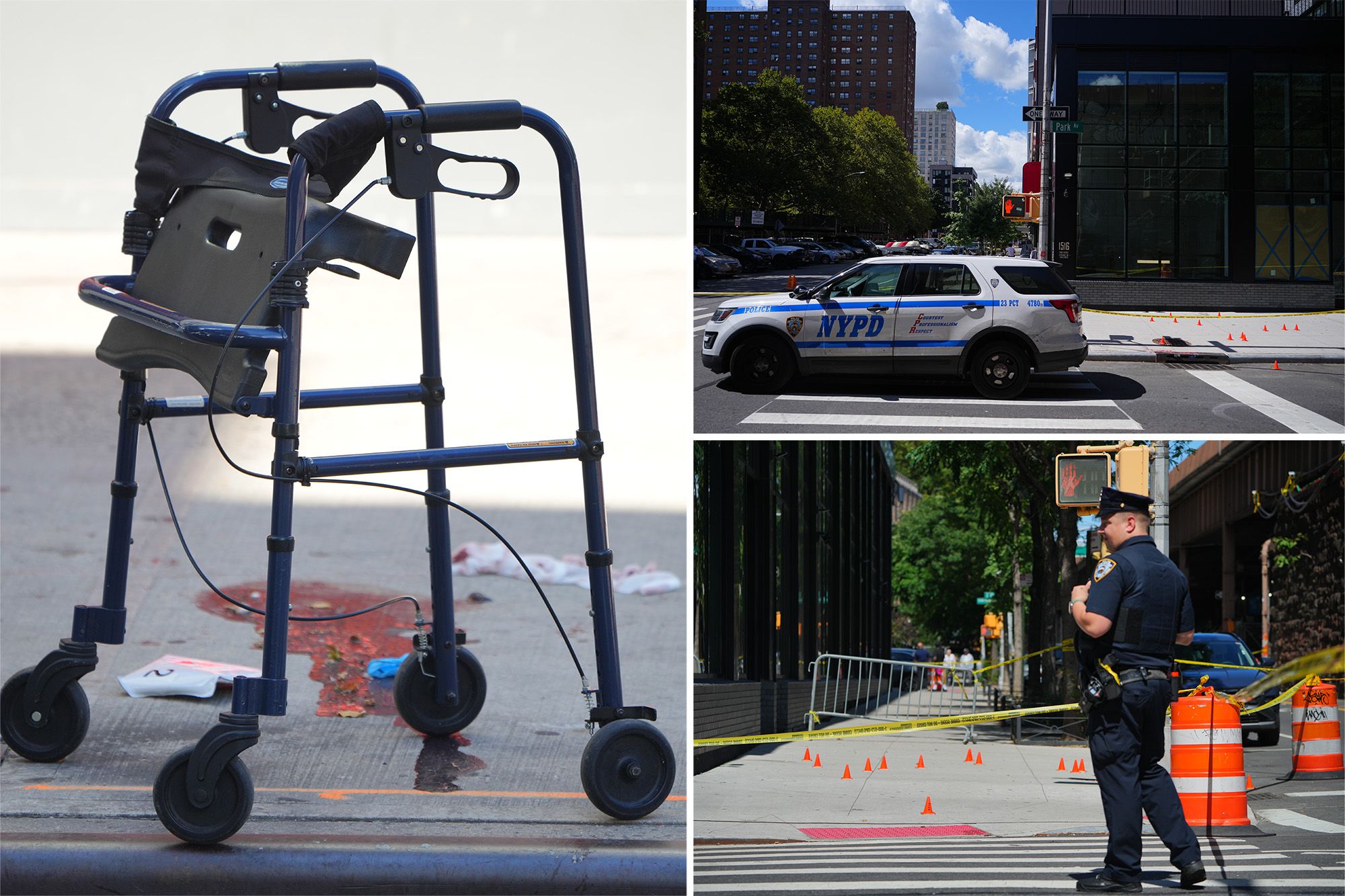 Photos from the scene show the walker abandoned outside a C-Town supermarket at the corner, next to a pool of blood.